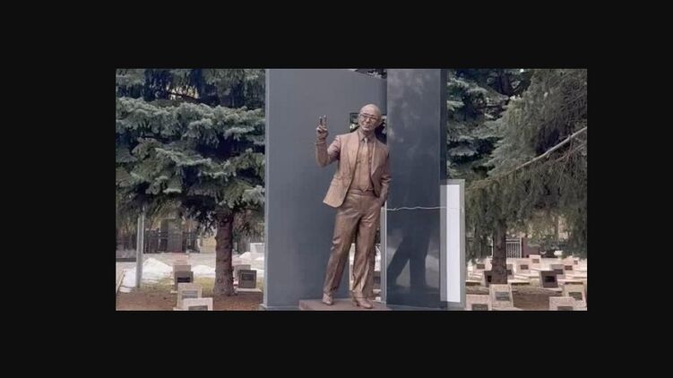 На могиле покойного мэра Харькова Геннадия Кернеса появилась его бронзовая скульптура в полный рост.