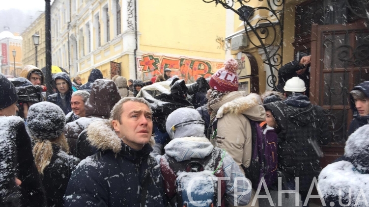 Сегодня утром, 29 ноября, в Киеве на Андреевском спуске прошел митинг киевлян против появления в исторической части города уродливого здания в виде Черного куба.