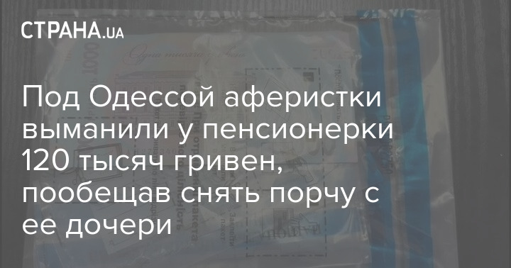 В Одесской области полицейские разоблачили группу злоумышленниц, которые пообещали пожилой женщине снять порчу с дочери и выманили у нее 120 тысяч гривен.