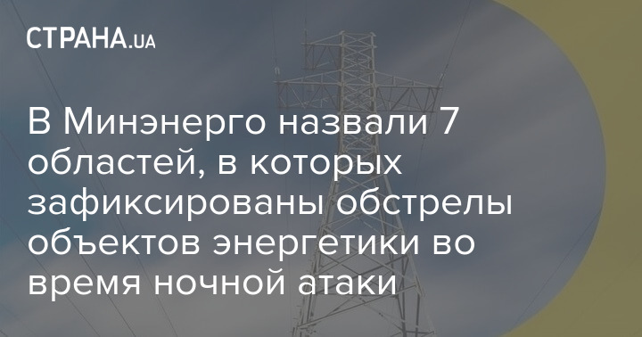 В Минэнерго назвали 7 областей, в которых зафиксированы обстрелы объектов энергетики во время ночной атаки
