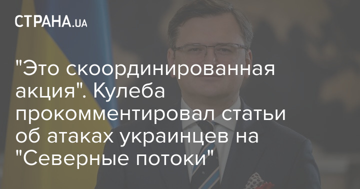 Министр иностранных дел Украины Дмитрий Кулеба назвал скоординированной акцией публикации о "проукраинской группировке", заподозренной в совершении диверсий на газопроводах "Северный поток".