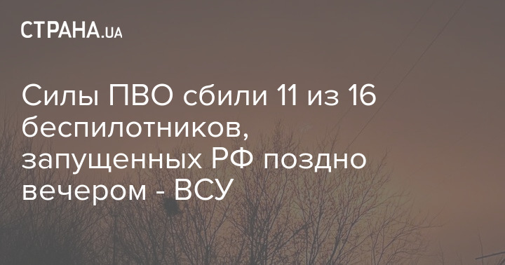Силы ПВО сбили 11 из 16 беспилотников, запущенных РФ поздно вечером - ВСУ