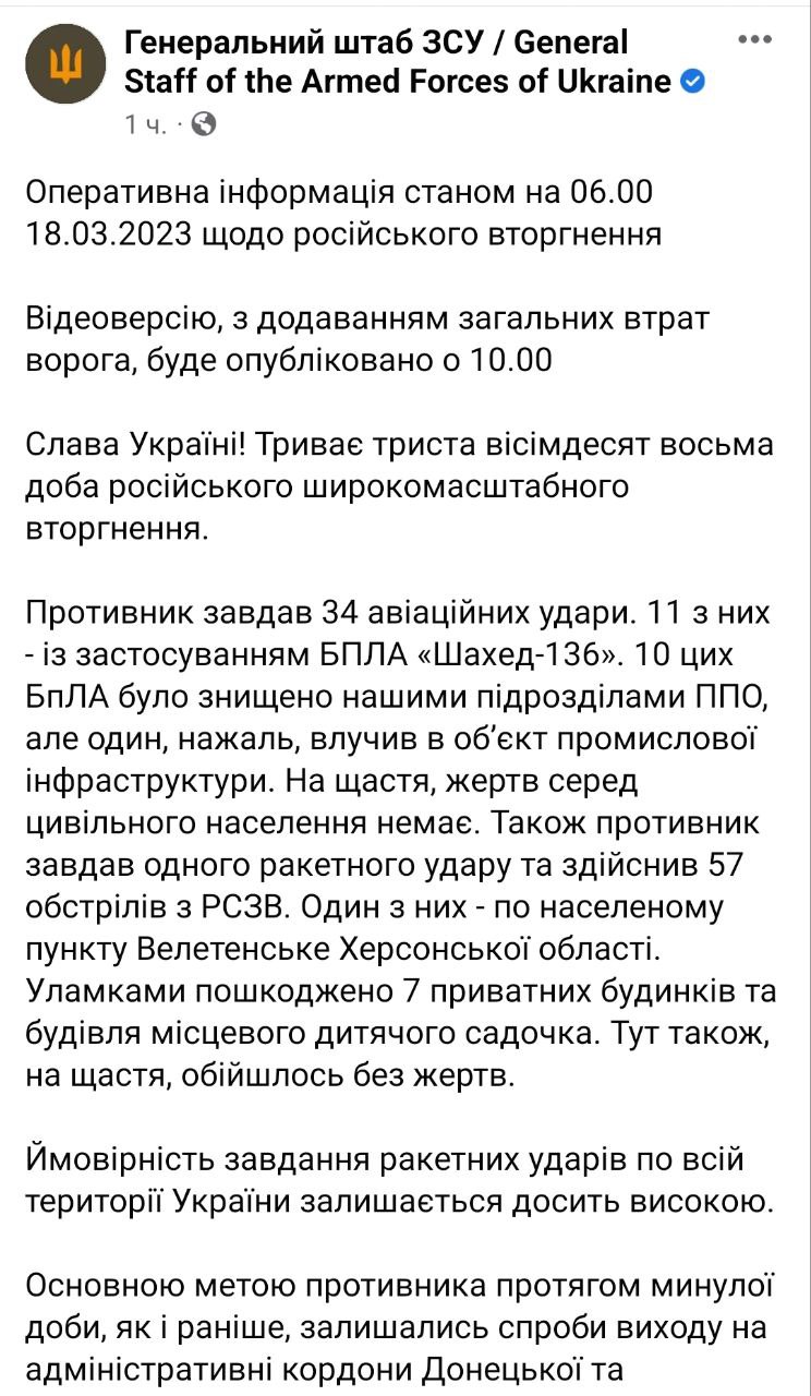 18.24 Вечерняя сводка Генштаба ВСУ.