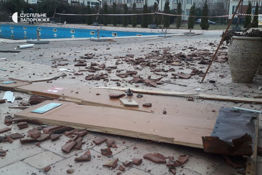 06.36 Российская ракета разрушила заведение общепита в Запорожье. От взрывной волны в окрестных домах вылетели стекла, повреждены крыши и фасады.