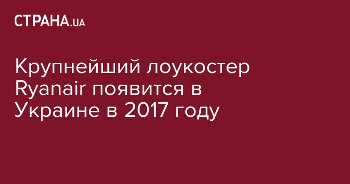 В Украине начнет работу в 2017 году один из крупнейших и бюджетных в мире лоукостеров — Ryanair. Об этом пишет UBR.ua со ссылкой на генерального директора компании "Мастер-Авиа" Алексея Яковца.