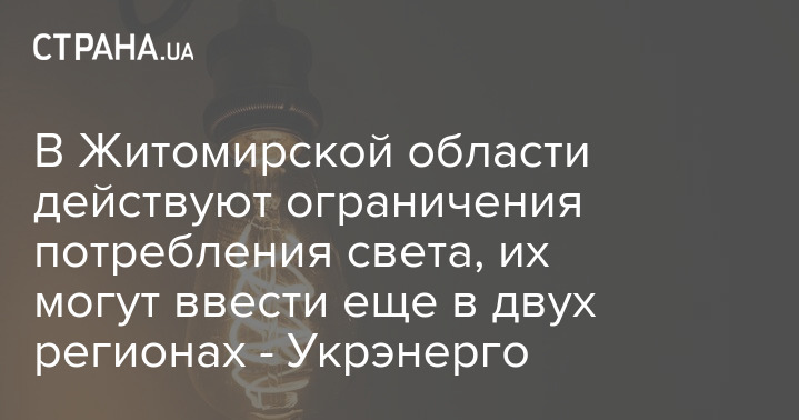 В Житомирской области в понедельник, 20 марта, из-за значительных повреждений сетей применяются ограничения потребления. Также возможны в случае роста потребления ограничения в Киеве и Киевской области.