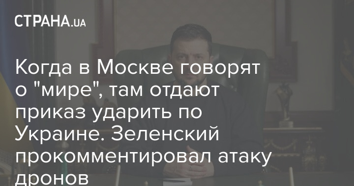 Когда в Москве говорят о "мире", там отдают приказ ударить по Украине. Зеленский прокомментировал атаку дронов