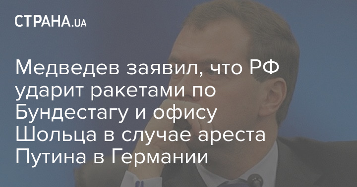 Зампред Совбеза России Дмитрий Медведев заявил о ракетном ударе по Бундестагу и офису канцлера Германии, если президента РФ Владимира Путина арестуют.