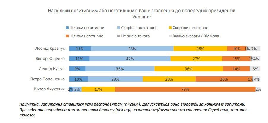 Из бывших президентов украинцы лучше всего относятся к Леониду Кравчуку и Виктору Ющенко, а хуже всего - к Виктору Януковичу и Петру Порошенко.
