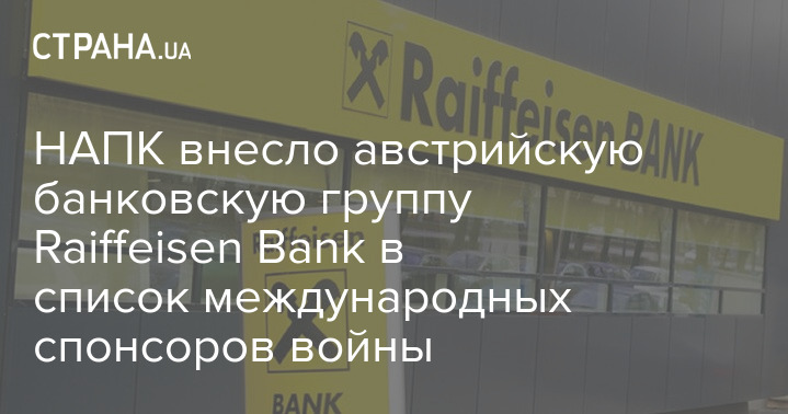 НАПК внесло австрийскую банковскую группу Raiffeisen Bank в список международных спонсоров войны