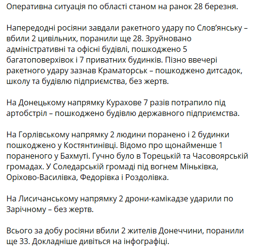 Напомним, 26 марта россияне нанесли удары по Краматорску и Авдеевке, пострадала промышленная зона и коксохимзавод.