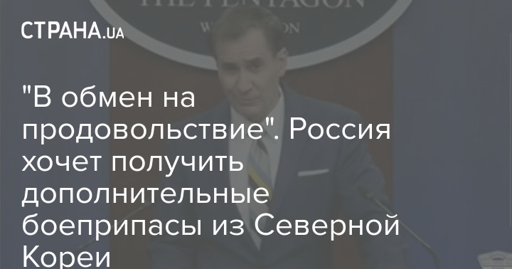 "У нас есть новая информация о том, что Россия активно стремится приобрести дополнительные боеприпасы у Северной Кореи. Мы также понимаем, что Россия стремится направить делегацию в Северную Корею. И что Россия предлагает Северной Корее продовольствие в обмен на боеприпасы", - заявил Кирби.