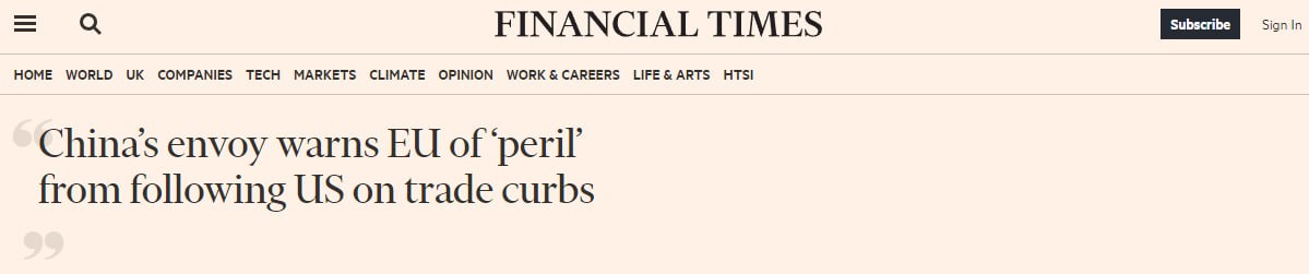 Об этом заявил посол Китая в Евросоюзе Фу Цун, пишет Financial Times.