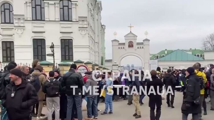 Между тем, сейчас около Киево-Печерской лавры находится около 10-15 противников УПЦ, которые периодически кричат "Слава Украине".