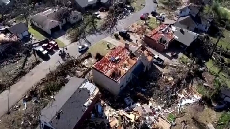 Издание сообщает, что уже зарегистрировано 50 предварительных сообщений о торнадо по крайней мере в семи штатах, в том числе в Арканзасе, где шторм унес жизни пяти человек — четырех в небольшом городе Винн и еще одного человека в Норт-Литтл-Рок.