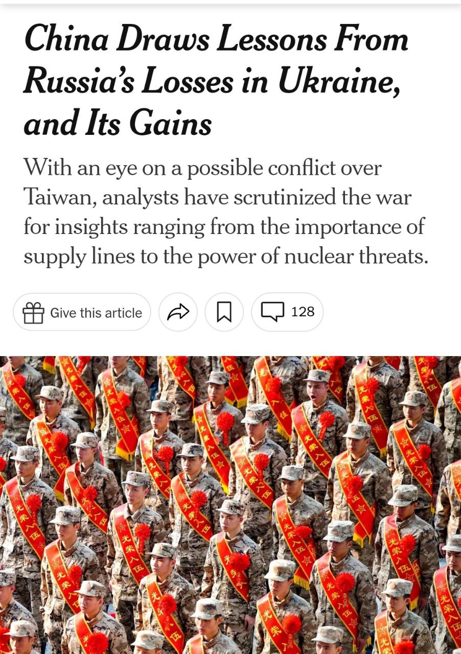 Газета The New York Times опубликовала материал о том, какие уроки Китай извлекает из поражений и побед России в Украине.