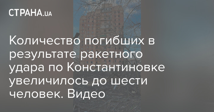 Количество погибших в результате ракетного удара по Константиновке увеличилось до шести человек. Видео