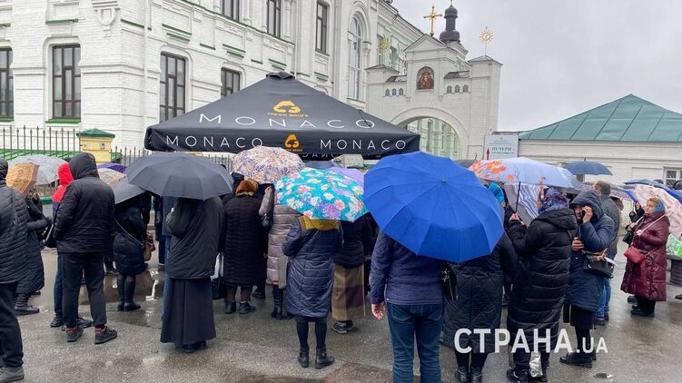 Возле Лавры собрались верующие. Фото: ctrana.news