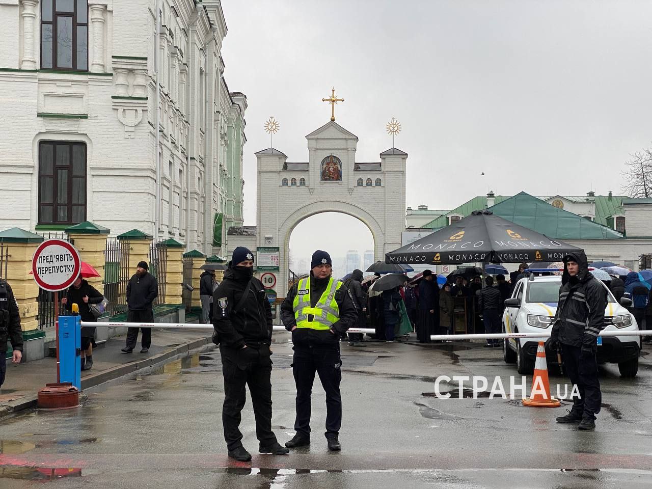 Также у главного входа Лавры дежурит значительное количество правоохранителей.