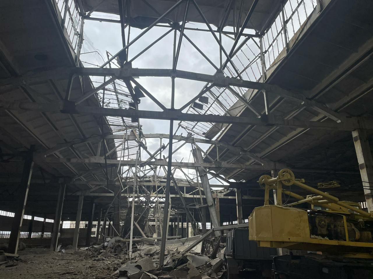 Боеприпасы повредили металлические конструкции здания и крышу цеха. По предварительной информации, люди не пострадали.