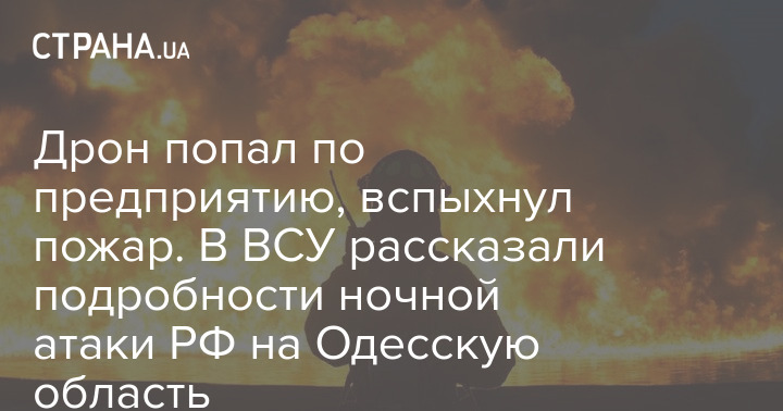 "Попаданием по одному из предприятий в Одесской области был вызван пожар, который до утра спасателям удалось ликвидировать. Предварительно, без человеческих жертв", - сообщили в оперативном командовании.