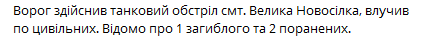 На данный момент известно об 1 погибшем и 2 раненых в результате российского обстрела.