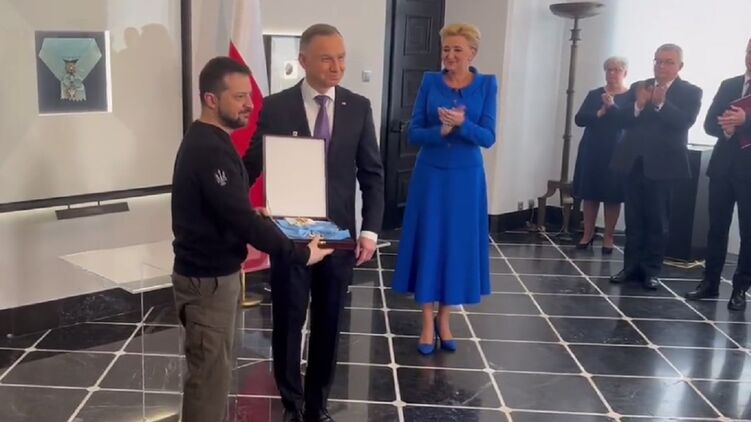 Президента Украины Владимира Зеленского в Польше наградили орденом Белого Орла. Видео публикует канцелярия польского президента Анджея Дуды.