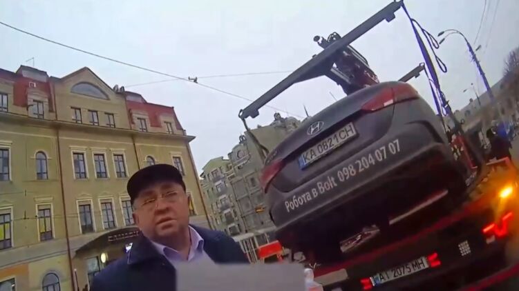 Авто мужчины забрал эвакуатор из-за неправильной парковки. Скриншот видео