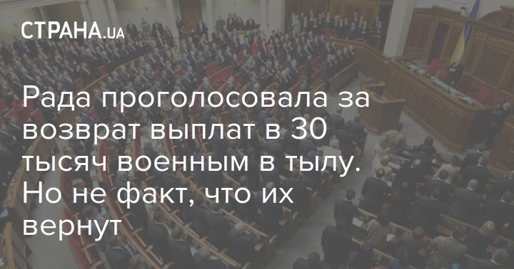 Сегодня на заседании Верховной Рады депутаты проголосовали за возврат выплат 30 тысяч гривен военнослужащим, а также сотрудникам Нацполиции и ГосЧС, которые проходят службу в тылу.