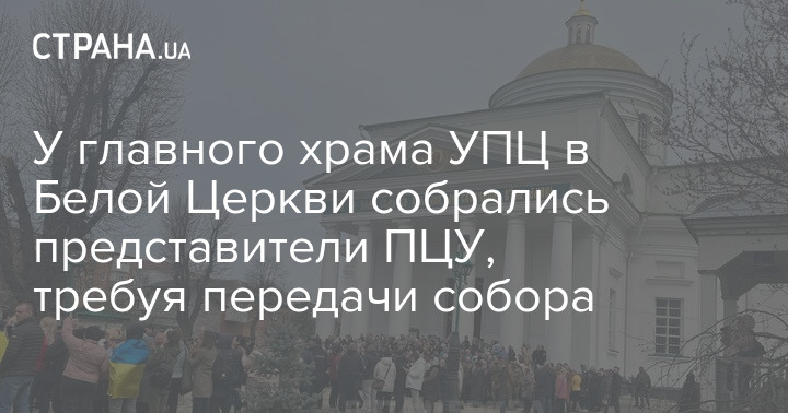 У Спасо-Преображенского собора УПЦ в Белой Церкви собрались представители ПЦУ. Они собирают подписи за переход храма в новую церковь.