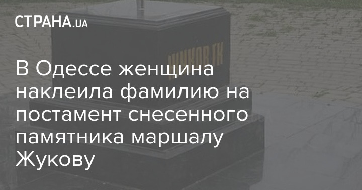 В Одессе местная жительница наклеила фамилию и инициалы советского полководца, маршала Советского Союза Георгия Жукова на место, где ранее был его памятник.