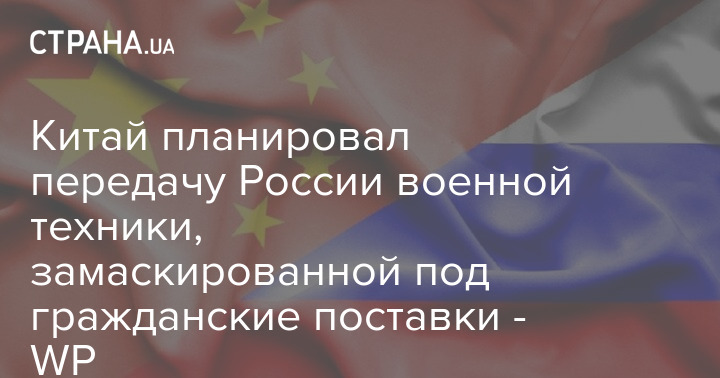 Китай планировал передачу России военной техники, замаскированной под гражданские поставки - WP