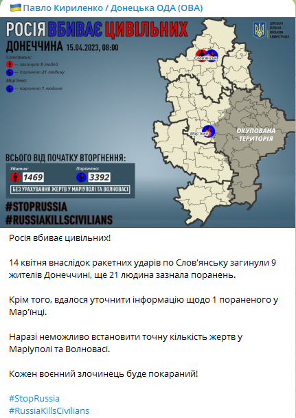 Тем временем война в Украине продолжается уже 416-й день. Мы следим за новостями 15 апреля в своем онлайне.