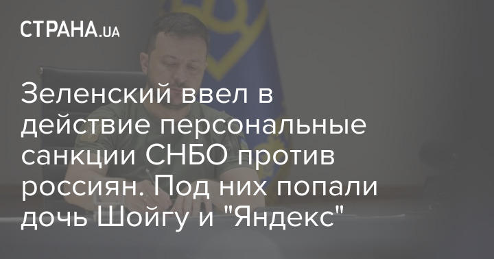 Зеленский ввел в действие персональные санкции СНБО против россиян. Под них попали дочь Шойгу и "Яндекс"