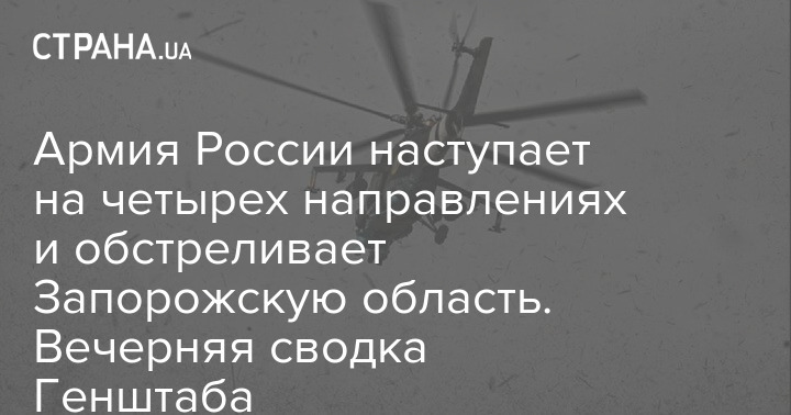 В Генеральном штабе Вооруженных сил Украины опубликовали оперативную сводку с фронта по состоянию на 18:00 16 апреля. Сообщается, что российские войска наступают на четырех направлениях и обстреливают Запорожскую область.