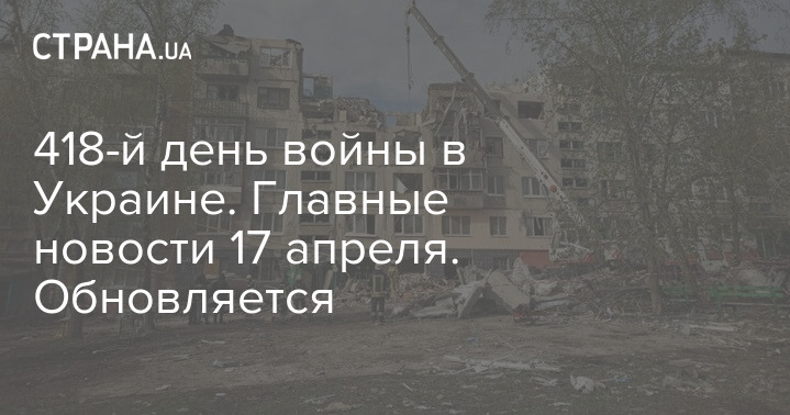 В понедельник, 17 апреля, в Украине идет уже 418-й день войны с РФ.