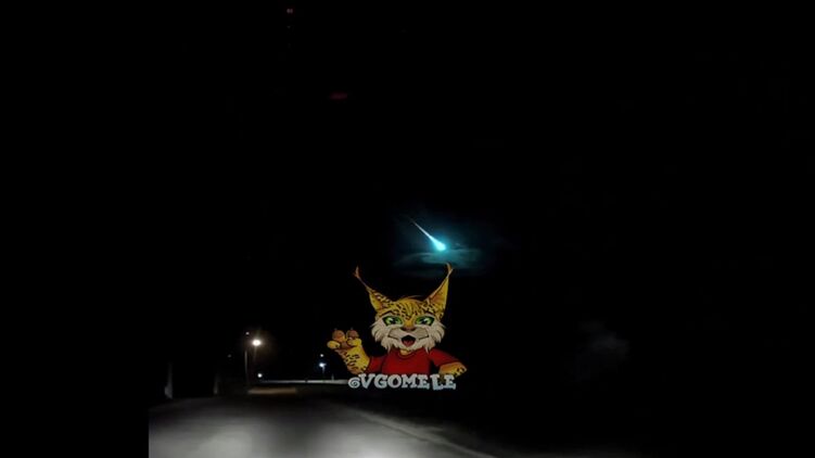 В Беларуси на камеры автомобильного видеорегистратора попал объект, похожий на метеорит с зеленым следом за ним, который вчера видели жители Киевской области.