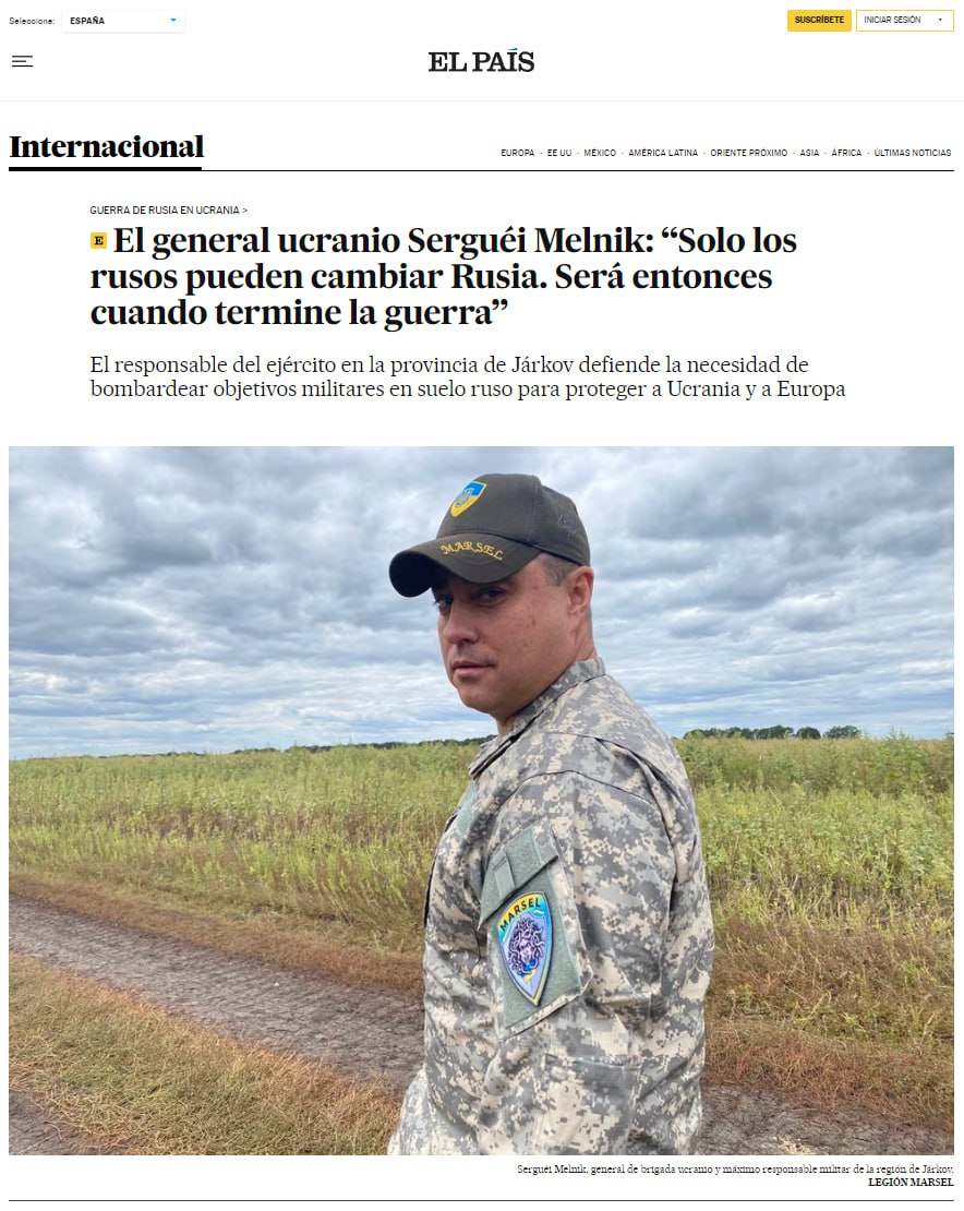 "Проблема в том, что у нас никогда не будет достаточно людей и техники. Потому что те, кто являются профессиональными военными, закаленные в патриотизме, уже истощены, ранены или выздоравливают. Или они умерли. Поэтому мы приглашаем людей без военного опыта и обучаем их", - заявил он в интервью El Pais,
