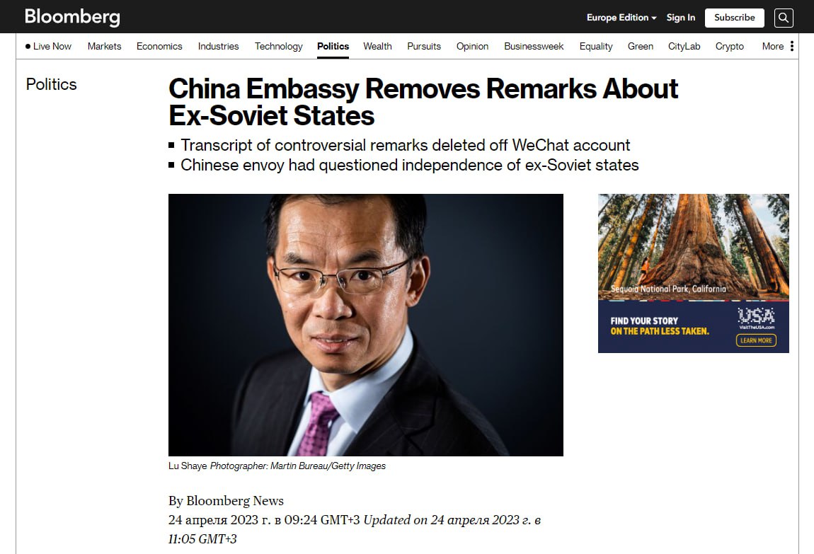 12.05 Посольство Китая во Франции удалило стенограмму интервью, в котором посол КНР поставил под сомнение независимость республик бывшего СССР, пишет Bloomberg.