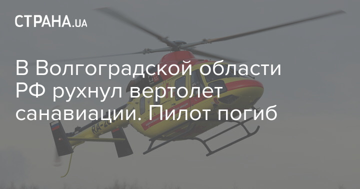 В Волгоградской области РФ потерпел крушение вертолет санавиации. Пилот погиб.