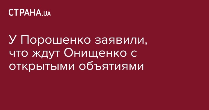 У Порошенко заявили, что ждут Онищенко с открытыми объятиями