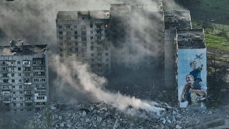 Появилось фото разрушенной известной многоэтажки с муралом в Бахмуте. Фото: Telegram