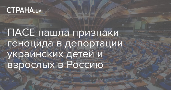 Парламентская ассамблея Совета Европы (ПАСЕ) поддержала резолюцию о принудительной депортации украинских детей и взрослых в Россию. В организации сочли депортацию признаками геноцида.