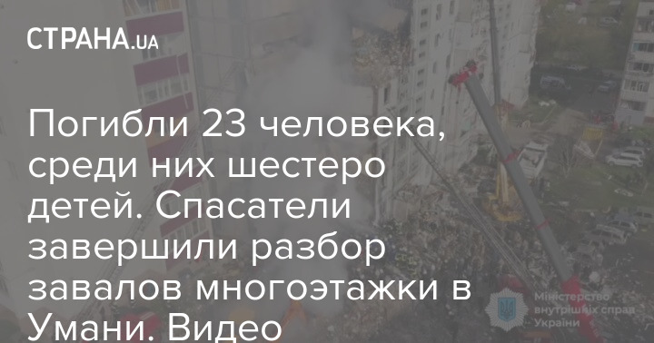 Погибли 23 человека, среди них шестеро детей. Спасатели завершили разбор завалов многоэтажки в Умани. Видео