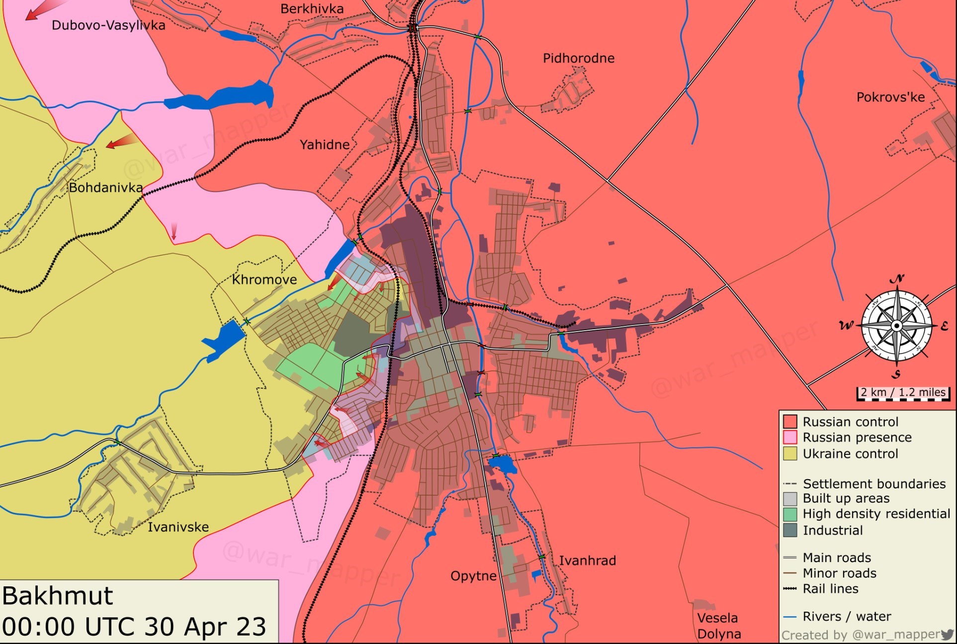 По данным украинского Генштаба, идут бои внутри Бахмута, рядом с городом были атаки на Ивановское и Предтечино.