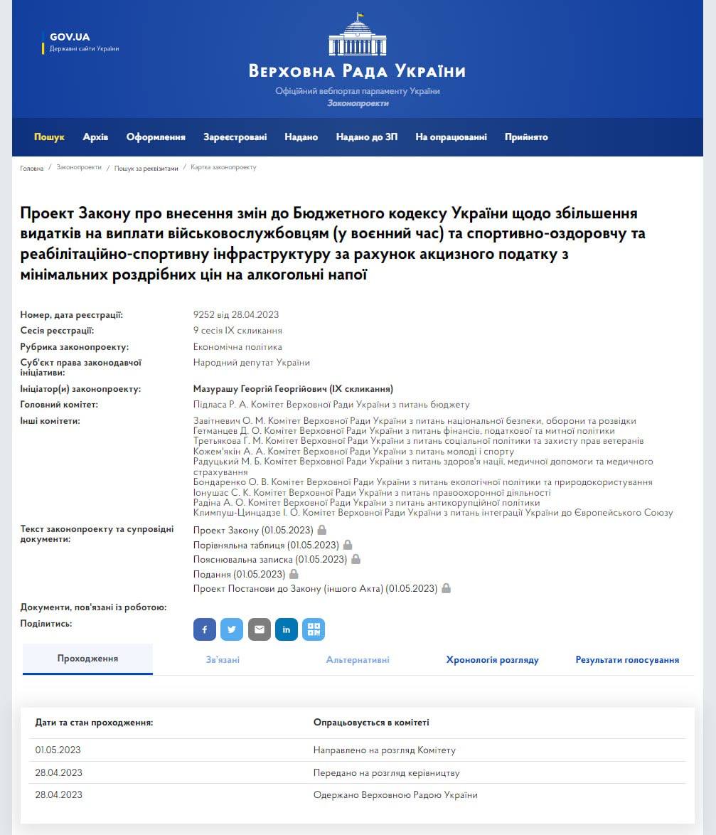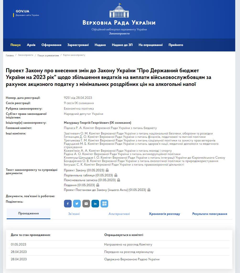 В Верховной Раде зарегистрировали три законопроекта (№9251, №9252, №9253) о повышении на 10% акцизов на алкоголь. Вырученные средства планируется направить на выплаты военным.