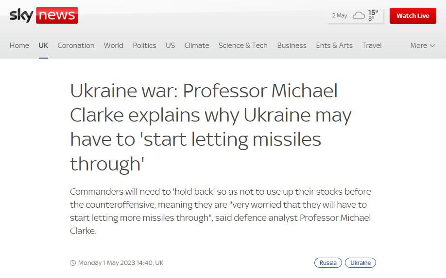Он заявил, что командиры намерены сберечь запасы перед наступательной операцией, а значит, они "очень обеспокоены тем, что им придется начать пропускать больше ракет", говорится в сюжете.