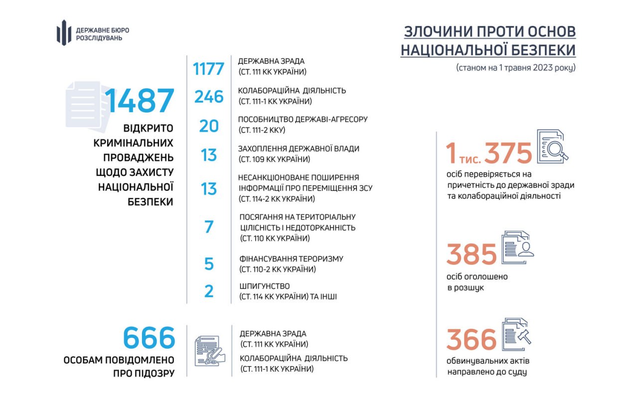 Также расследуются 226 уголовных дел по факту коллаборационизма (ст.111-1 УК), сообщает пресс-служба ГБР.