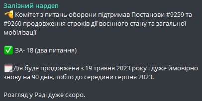 10.44 Комитет по обороне поддержал постановления по продлению военного положения и мобилизации.