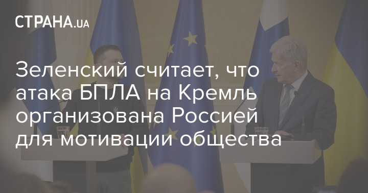 Зеленский считает, что атака БПЛА на Кремль организована Россией для мотивации общества